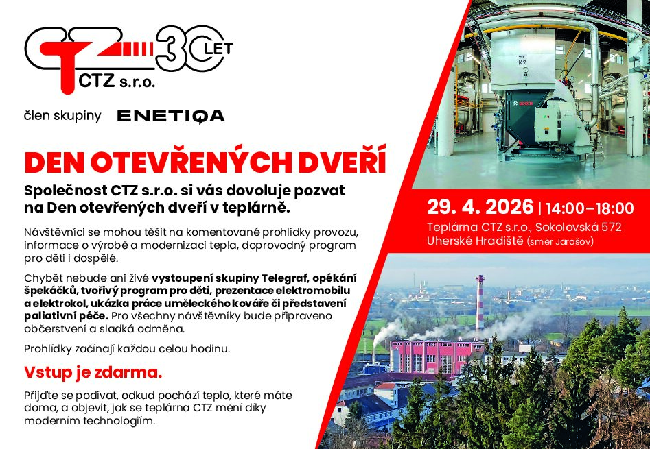 Společnost CTZ vás zve na Den otevřených dveří ve středu 29. dubna od 14:00 do 18:00 hodin. Slavnostní zahájení proběhne ve 14:30, za účasti společníků a jednatelů společnosti.